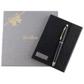 This luxurious set includes a high-quality ballpoint pen and a stylish diary. The pen is crafted with a stainless steel upper body and features Chrome-plated brass accessories. It is coated in multiple layers of Matt Black lacquer for a durable and elegant finish. The diary is made of soft-touch PU and has a leather-like look and feel. It contains premium archival acid-free paper that is fountain pen friendly.