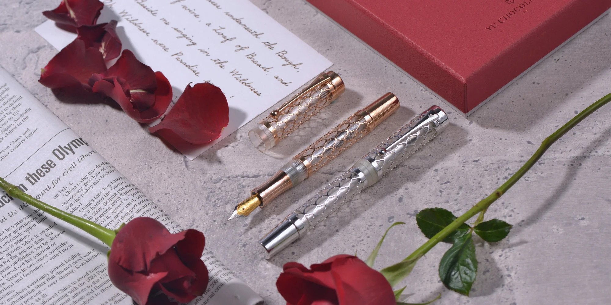 The Laban Flora collection fountain pens is an elegant line made of transparent Italian resin with a metal casing. The floral pattern is like a solid line of lanterns, sleek and elegant. The large black Win nib is smooth in use and the pen has a nice balance in the hand.