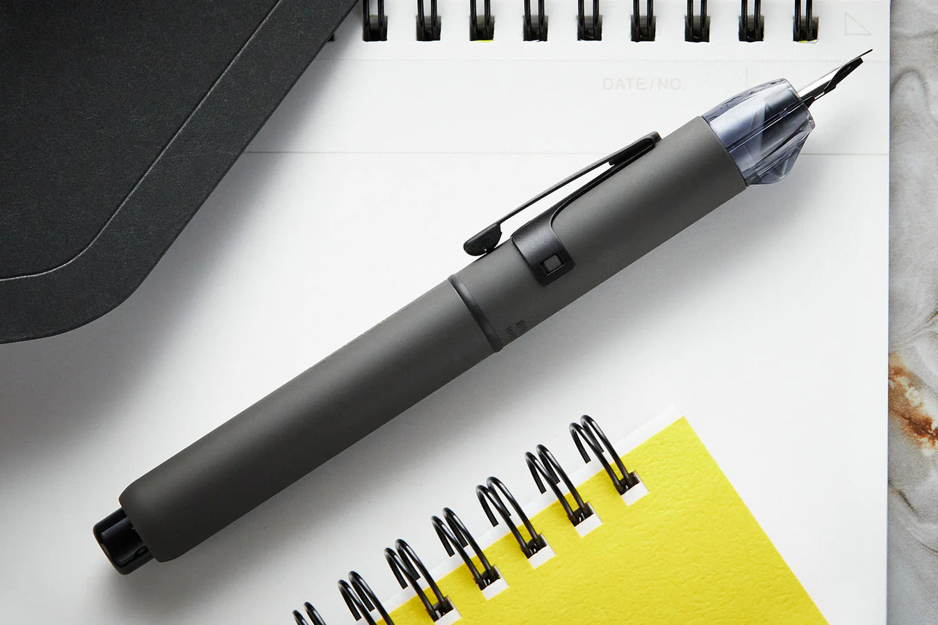 A new lineup is now available from the CURIDAS retractable fountain pen series.The new model has an opaque resin body coated with a rubberized coating to create a matte, smooth texture. The clip and ring are applied with a black matte electrodeposition coating, which combined with the body texture, gives a comfortable feel suited for both private and business use. In addition, designed for ease of writing, the pen nib is made at a length so that it is easier to see the face of the paper when writing, while the compact clip allows more flexibility for a comfortable grip. Being retractable, CURIDAS is a next-generation fountain pen that solves the problem of having trouble opening the cap when your other hand is full, which is recommended for those who lead an active life.