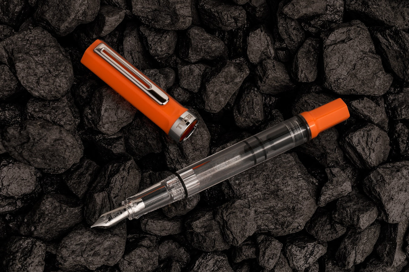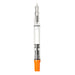 The TWSBI ECO fountain pen boasts an incredible value with its piston filling system and affordable price. Like many other TWSBI fountain pens, it features a crystal clear acrylic barrel so you can see your ink level, and an orange cap and finial. The pen cap has an inner cap to ensure a perfect seal when stored away. It is completed with silver trim and a silver stainless steel nib.