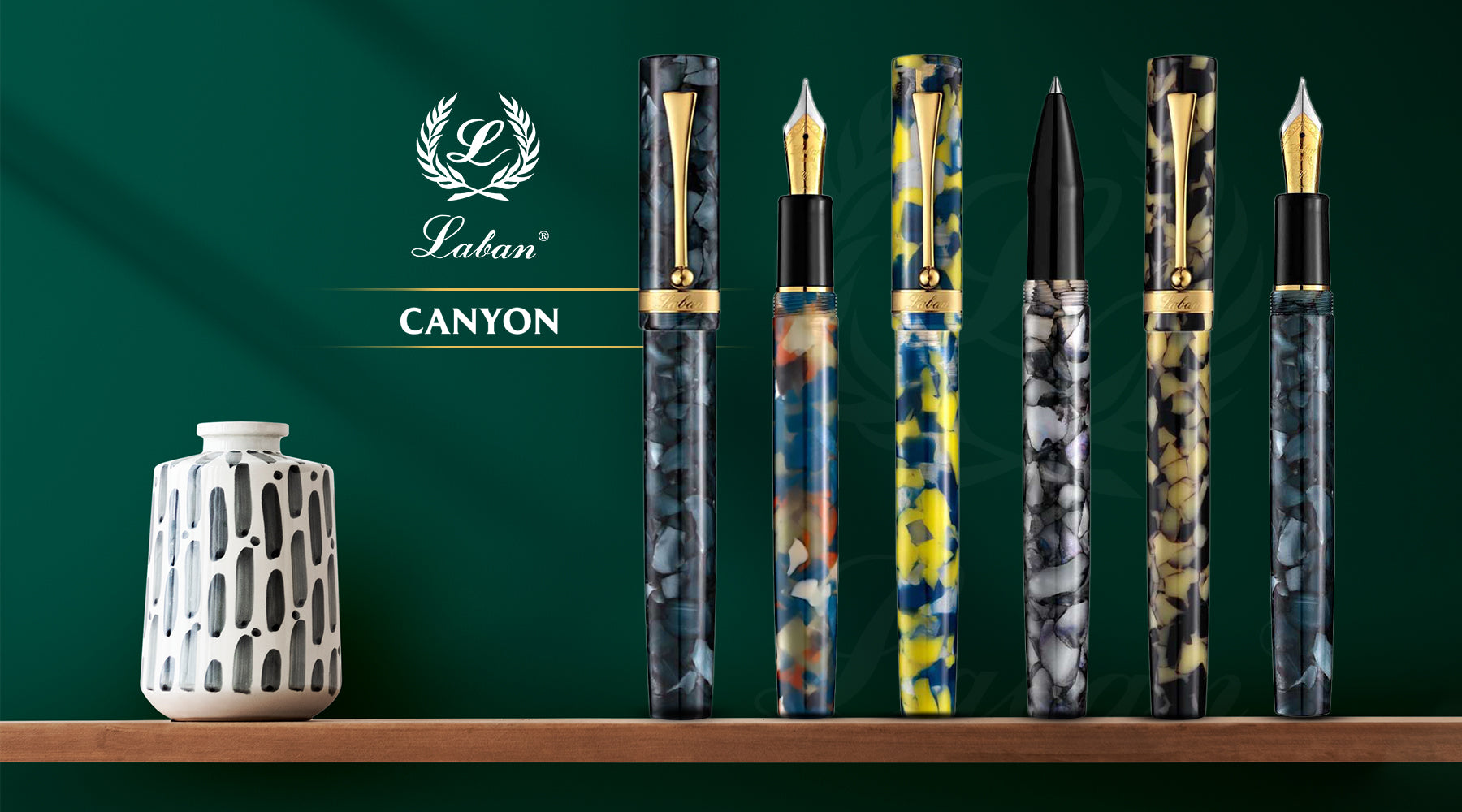 The Laban Canyon collection remembers us the American West with colors inspired by natural designs. These writing instruments are turned in Italian resins and polished to a high screen in rich flecked colors. Each pen is adorned with a sleek ball clip and gold-plated cap band.