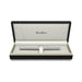 Brass cap chiseled with wave pattern plated with chromium. The cap is closed by pressing. Brass accessories plated with chromium. Stainless steel clip plated with chromium - arc type. Brass body chiseled with wave pattern plated with chromium. Black ABS (acrylonitrile butadiene styrene) grip. Stainless steel polished nib, having on top an iridium point. The pen works with both cartridges and converter systems.