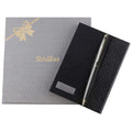 Stainless brushed steel upper body. Brass accessories plated with chromium. Stainless steel clip plated with chromium - arc type. Twist Mechanism. Stainless brushed steel lower body. Scrikss Jumbo refill - Parker type (see consumables).