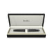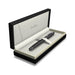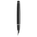 Brass cap plated with multiple layers of glossy black lacquer. The cap is closed by pressing. Brass accessories plated with chromium. Stainless steel clip plated with chromium - arc type. Brass body plated with multiple layers of glossy black lacquer. Black ABS (acrylonitrile butadiene styrene) grip. Stainless steel polished nib, having on top an iridium point. The pen works with both cartridges and converter systems.