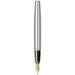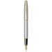 Stainless steel pen plated with 23k gold with a thickness of 0.5µ, with an iridium tablet on top. The pen works with both cartridges and converter.