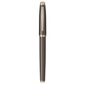 Brass cap chiseled with wave pattern plated with chromium. The cap is closed by pressing. Brass accessories plated with chromium. Stainless steel clip plated with chromium - arc type. Brass body chiseled with wave pattern plated with chromium. Black ABS (acrylonitrile butadiene styrene) grip. Stainless steel polished nib, having on top an iridium point. The pen works with both cartridges and converter systems.