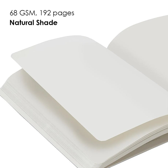 The book contains 192 pages of 68 GSM Natural Shade Paper with Hand Drawn Cover for flat opening. The covering material is Wibalin Buckram from Winter & Company, UK.