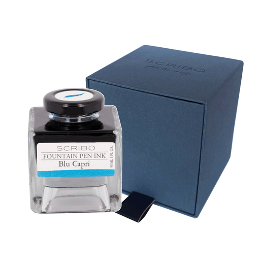 SCRIBO - BLU CAPRI Blu Capri, the shine of the blue grotto With the colours of the new FOUNTAIN PEN INK collection, SCRIBO adds the range of pigmen...