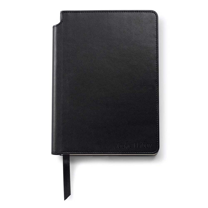 Embossed black journal with built in holder for accompanying chrome classic twist-action ballpoint, in Cross gift box Custom engraving looks light brass on the pen ' Engraving on the journal is appears embossed. AT Cross brand pen with black ink -Lifetime Mechanical Warranty by Cross Ideal gift for men, women, students, writers, students, journaler, and realtors Embossed black journal with built-in holder for accompanying chrome classic twist-action ballpoint. The custom engraving shows brass on the pen and black embossed on the journal. Lifetime Mechanical Warranty by Cross. Ideal gift for men, women, professionals, students, writers, students, and realtors.