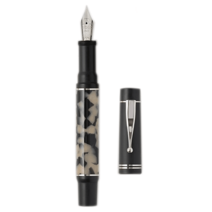 Tramonto is the handcrafted fountain pen in precious resin. The spotted effect refers to the last evenings of summer, when the clear and clear sky begins to fill with small clouds that chase each other. A bit like what happens in the mind when the most serene thoughts are added to the most bizarre ones to be placed on candid paper.