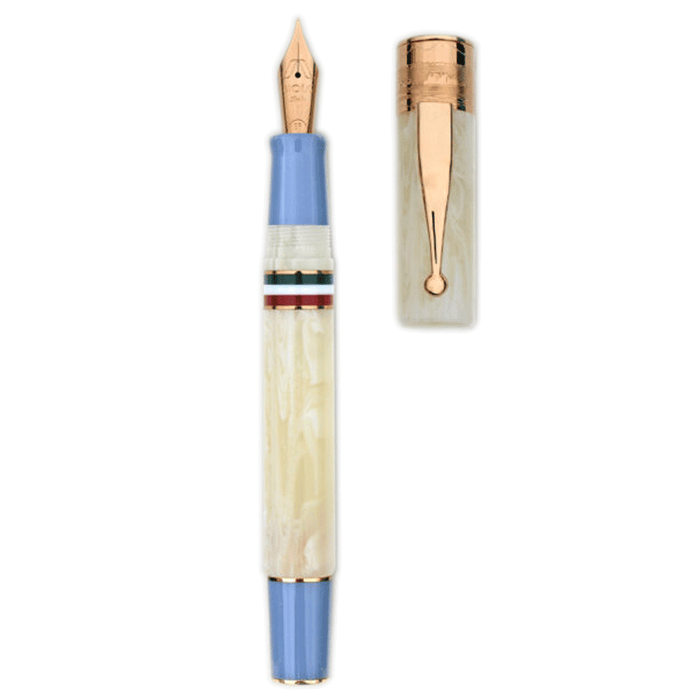 Partenope, a clear reference to Neapolitan genius in combining a fountain pen and roller in a single solution with a new cartridge refill and converter system. The clip obtained from an ancient goldsmith process called "lost wax". The real placed on the hood depicts the great beauty of the Gulf of Naples. Finally, the head obtained with the 3D technique is enameled! The result? A classic-modern silhouette without forgetting the Made in Italy. Rose gold plated details.