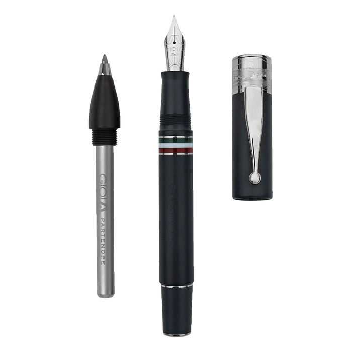 Partenope, a clear reference to the Neapolitan genius in combining fountain pens and rollerballs in a single solution with a new refill cartridge system and converter. The clip obtained from an ancient goldsmith process called "lost wax". The real post on the hood depicts the great beauty of the Gulf of Naples. Finally, the head obtained with 3D technique is enamelling! The result? A classic-modern silhouette without forgetting the Made in Italy. Rhodium-plated details. Custom JoWo # 6 steel nib in EF, F, M, B, Stub 1.1 or Stub 1.5. rhodium plated.