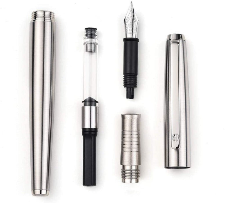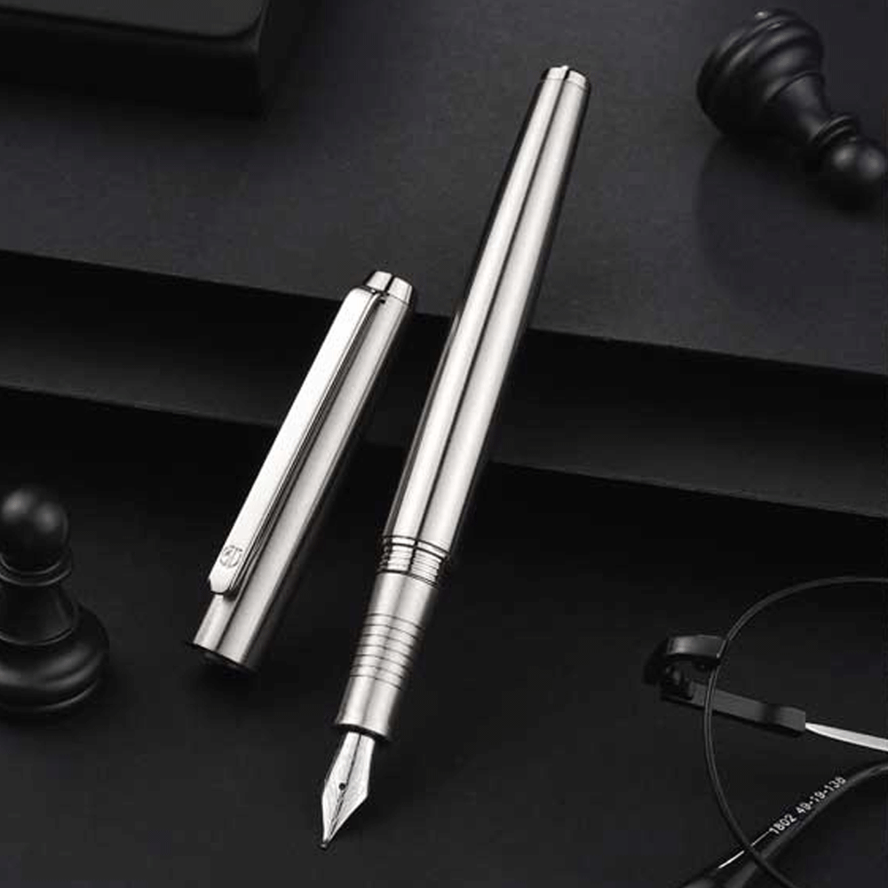 Nib –Extra Fine nib and screw gripping section guarantee a comfortable writing experience. Strength, durability, and beauty. Great for writing in different occasions. Unique Design- Excellent Silver stainless steel, very beautiful. High quality and exquisite technology made this pen perfect. First impressions are good. Smooth Ink Flow-Manufactured with a perfect weight-comfort ratio to ensure optimal performance. Ink flows smoothly with a gentle touch that is easy on your hand and the paper.