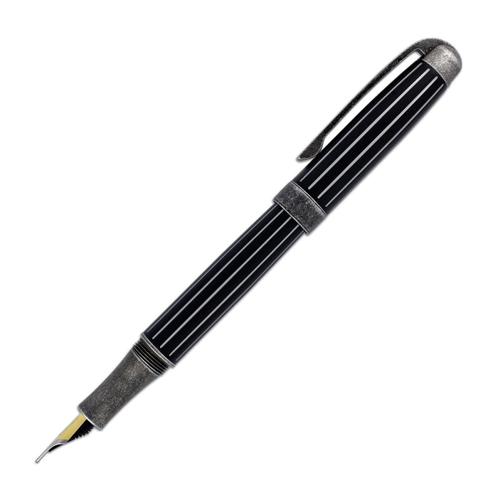This pen is a bit nostalgic, almost steampunk. No matter how classic the pen looks, the design is very modern and a very nice pen for the most spoiled user. This fountain pen is equipped with a Bock nib, smooth spring loaded clip, and curved grip. The very comfortable stability makes this an absolute addition to your daily pen collection.