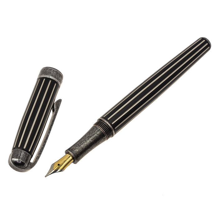 Vintage look. The Laban Antique II in Silver has a distressed effect lined barrel and cap. This pen has an excellent weight and will make a wonderful addition to your pen collection.