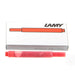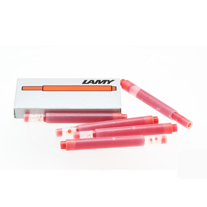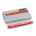 Refill your favorite fountain pen with this long-lasting ink cartridge set. Sold as a package of five cartridges, this convenient set comes in six different color options. Recommended for use with Lamy Fountain Pens for the best quality results. Come in 6 different color options: Blue, blue/black, green, violet, red, turquoise.