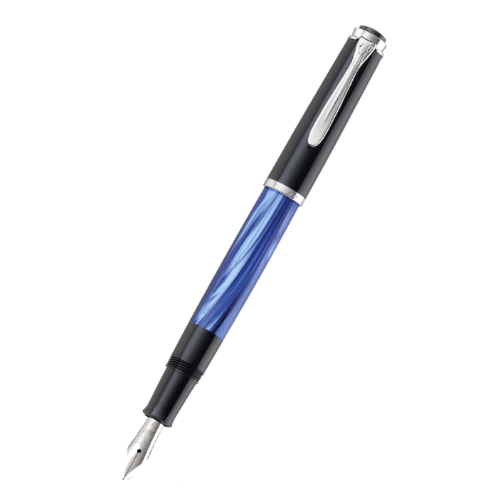 The Pelikan Classic M205 Fountain Pen Blue Marbled is equipped with a piston filling mechanism. The highly polished steel nib provides a special writing feeling and emphasizes the high art of manufacturing finest nibs.