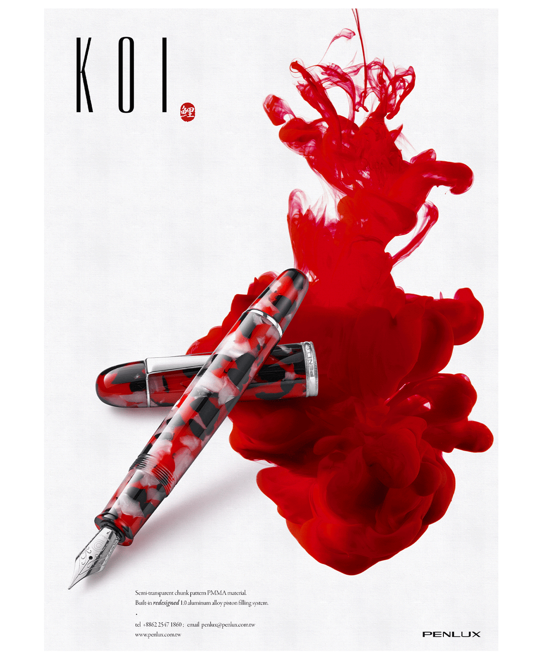 Koi are becoming a universal symbol of peace all over the world. Inspired by the patterns of KOI fishes, Penlux pen is going to launch a new pattern of Masterpiece Koi collection. We use high density of chunk PMMA to create the Koi King pattern and color. With built-in Penlux aluminum no. 1.5 piston system, you can enjoy the good value of high quality fountain pen.