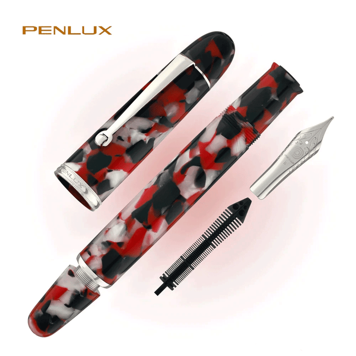 If you’ve been to a water garden or koi pond, then I’d bet you’ve been entranced by the peaceful patterns painted onto these jeweled fish. The way light glitters on their bright scales would make anyone pause for a moment of reflection. Koi fish have their fair share of mythology and symbolism surrounding them which has brought us to associate them with longevity, strength, success, prosperity, harmony, and happiness. The Penlux Masterpiece Grande Koi Red and Black was inspired by these peaceful beings, with a translucent, varied design that is reminiscent of scales going through the entire body, cap, and section. Let the Koi Red and Black bring you tranquility to pursue your own success, harmony, and happiness.