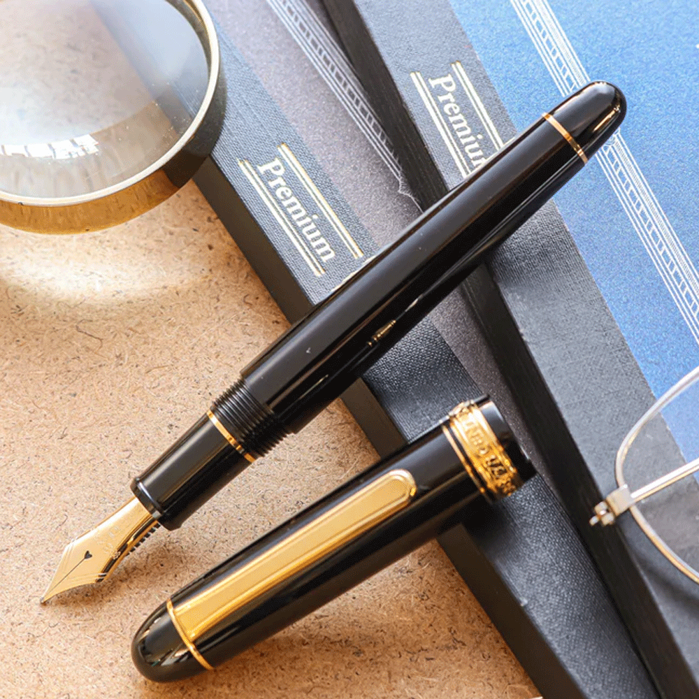 PLATINUM, Fountain Pen - #3776 CENTURY gold trim BLACK in BLACK.