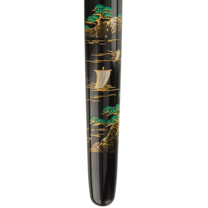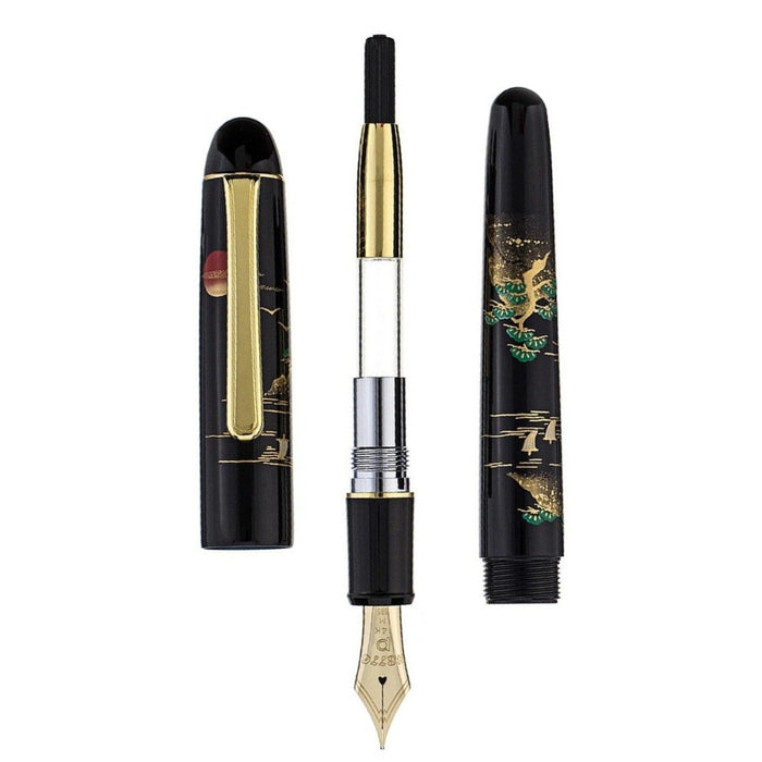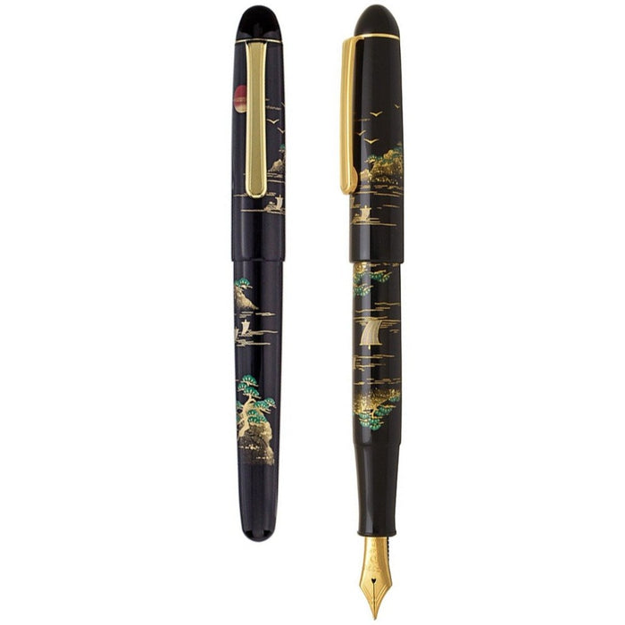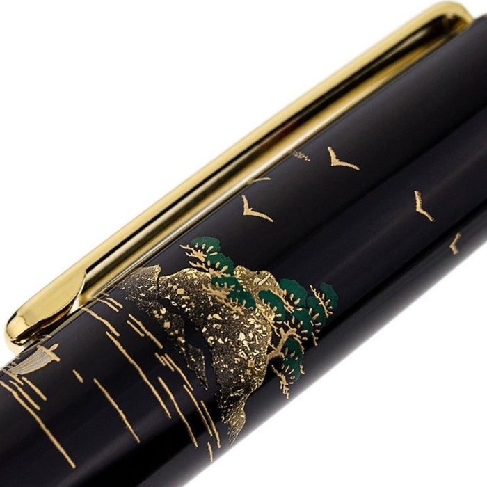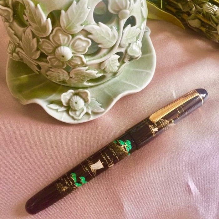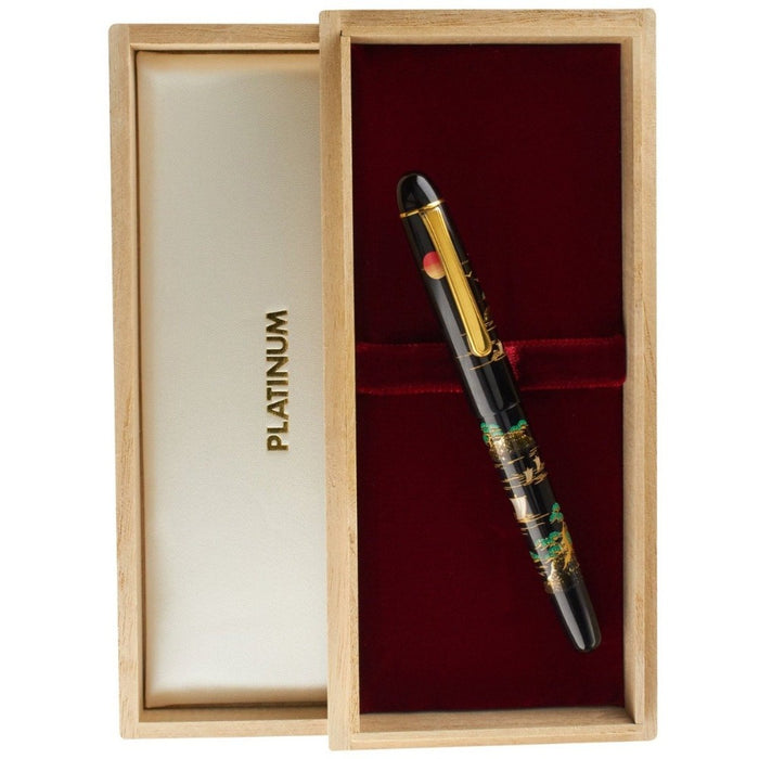 The Platinum 3776 Century Sansui fountain pen offers a complex Maki-e technique at a surprisingly affordable price. Normally provided with only limited nib choices, we can offer your choice from among the full range of Platinum 14k solid gold Century nibs.