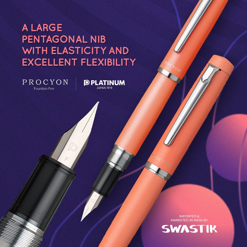 Platinum launches “PROCYON” Fountain Pen, Named after the brightest star in the constellation of Canis Minor, one of the 21 first magnitude stars, the new brand has employed an all-new body form under the concept of a fountain pen that brightens up people’s business scenes and lifestyles. PROCYON fountain pen employs the “Slip & Seal Mechanism” that provides a smooth writing experience at any time. The body made with aluminium that offers the best weight balance and the pentagon-shaped pen nib stimulate the pleasure of writing while the special coating that blends in well with the skin colour as well as the lineup of vivid colours stimulate the pleasure of owing the pen.