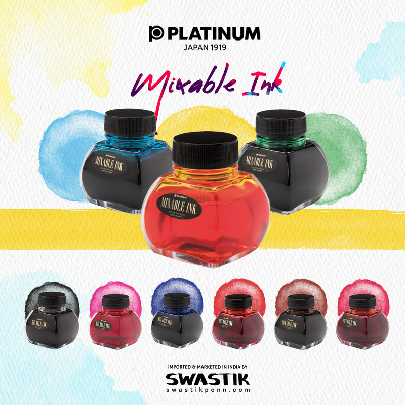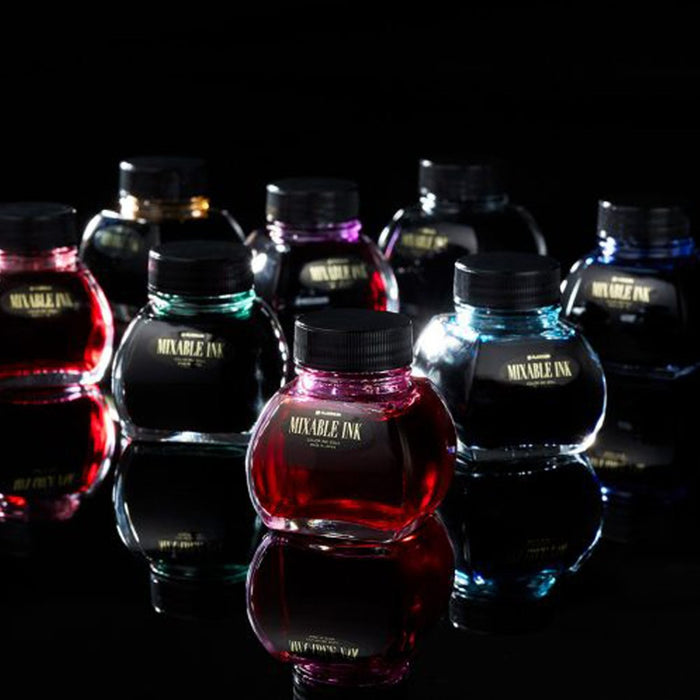 MIXABLE INK (60ml) was launched in 2011 as an ink series that lets you create your favorite color by mixing different ink colors. While it is enjoying popularity because each ink is lightly pigmented thereby enabling colors to be easily reproduced as intended, As there are nine colors available for you to choose your favorite ones.