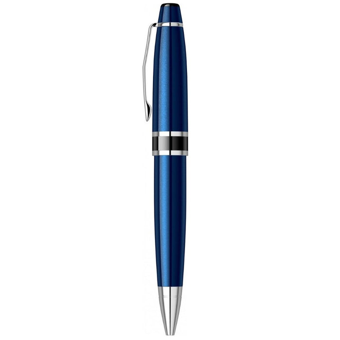 Brass cap plated with multiple layers of glossy blue lacquer. The cap is closed by pressing. Brass accessories plated with chromium or with multiple layers of black lacquer. Stainless steel clip plated with chromium-arc type. Brass body plated with multiple layers of glossy blue lacquer. Brass grip plated with multiple layers of glossy black lacquer.