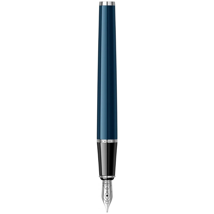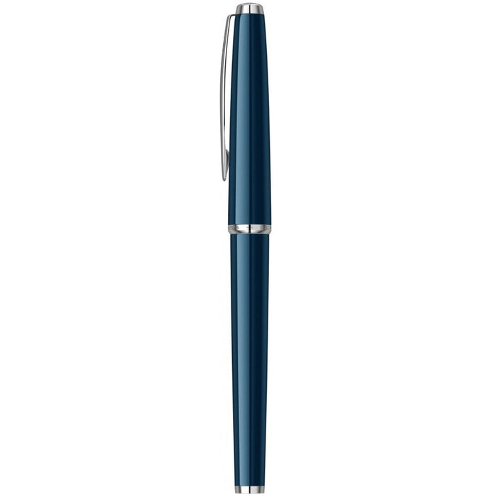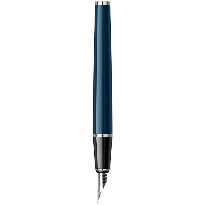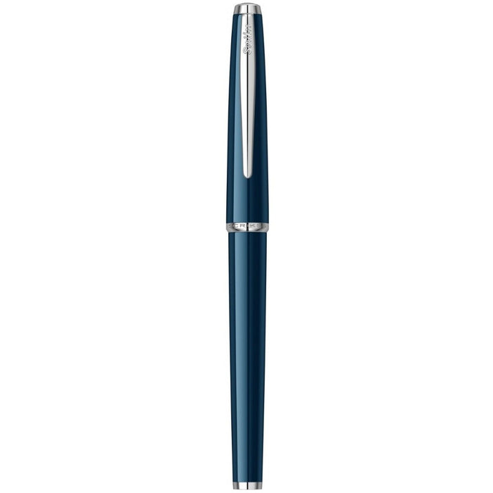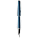 Chrome-plated brass accessories. The clip made of chrome-plated stainless steel. Cap in navy acrylic carbon fiber. The lid closes by pressing. Body made of navy acrylic carbon fiber. Influenza from ABS (styrene-butadiene acrylonitrile) in black. Polished stainless steel pen, with iridium pill. The pen works with both cartridges and converter.