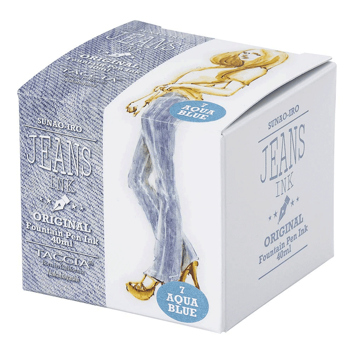 TACCIA introduces the new Jeans Ink as part of their fountain pen ink series. Like the fountain pen that adjusts to the writer’s hand after using for a long time, the jeans fit to the body as well. The inks express the color tone of jeans in seven colors from Black to Aqua Blue, depicting the attractive colors of jeans that changes upon continuous wear. Taccia Jeans Ink Aqua Blue comes packed in a 40ML glass bottle. Taccia Jeans Ink has the perfect balance of permeability and viscosity to ensure nice flow of ink onto paper while being gentle on the pen nibs. The ink is carefully formulated with neutral pH value so that it does not damage resin or celluloid fountain pens.