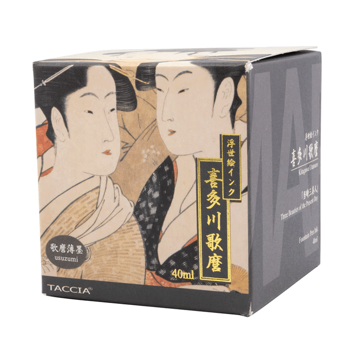Taccia's 2nd version has been released for another two great Ukiyo-e painters, Hiroshige and Utamaro. Hiroshige Utagawa has firstly drawn many arts in the motif of flower, bird, vegetation, insect etc. Utamaro Kitagawa has specialized in the art of "beautiful women". This time, we recreated the colors which they used to use for their arts and utilized their masterpiece works for the packages of our inks. Taccia Ukiyo-e Ink Usuzumi is a Crimson Cherry Blossom shade. It comes packed in a 40ML glass bottle.