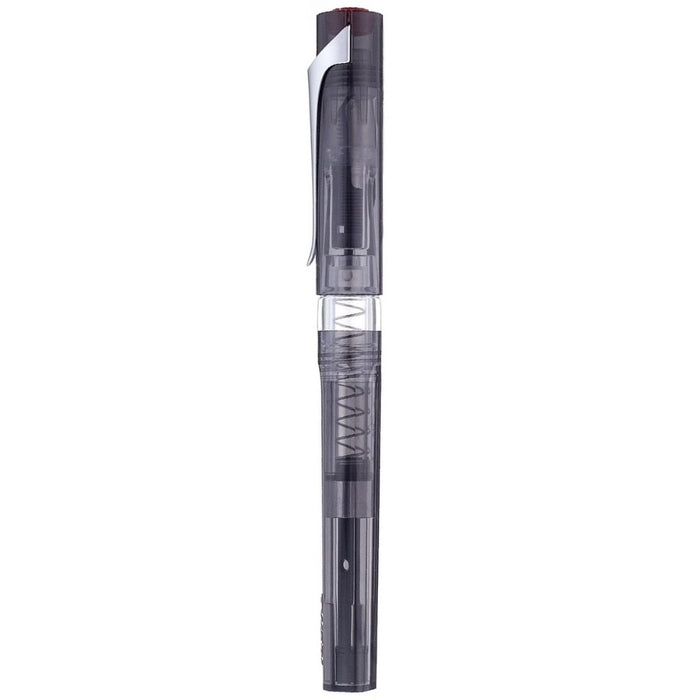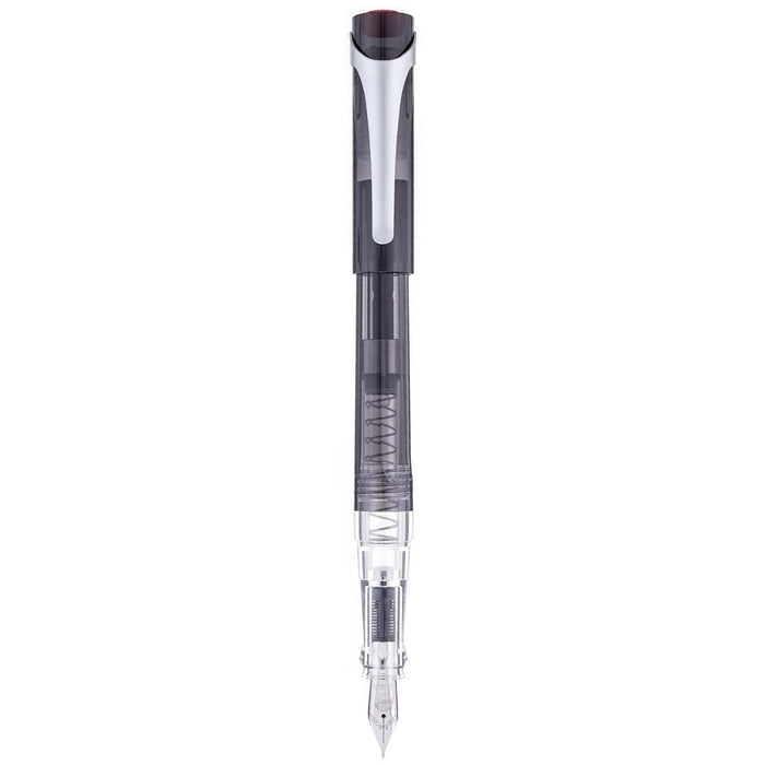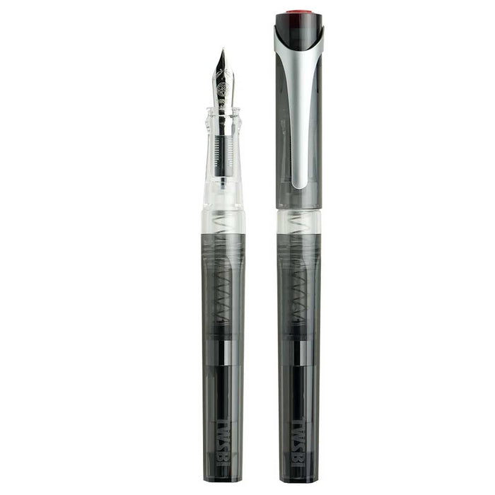 The TWSBI SWIPE fountain pen in Smoke is the 1st TWSBI fountain pen that uses a cartridge or a converter for bottled ink - and comes packages with a spring-loaded piston converter, and a short standard international cartridge. The translucent body allows you to see your ink level, and the pen also boasts a clear grip section and snap-cap.