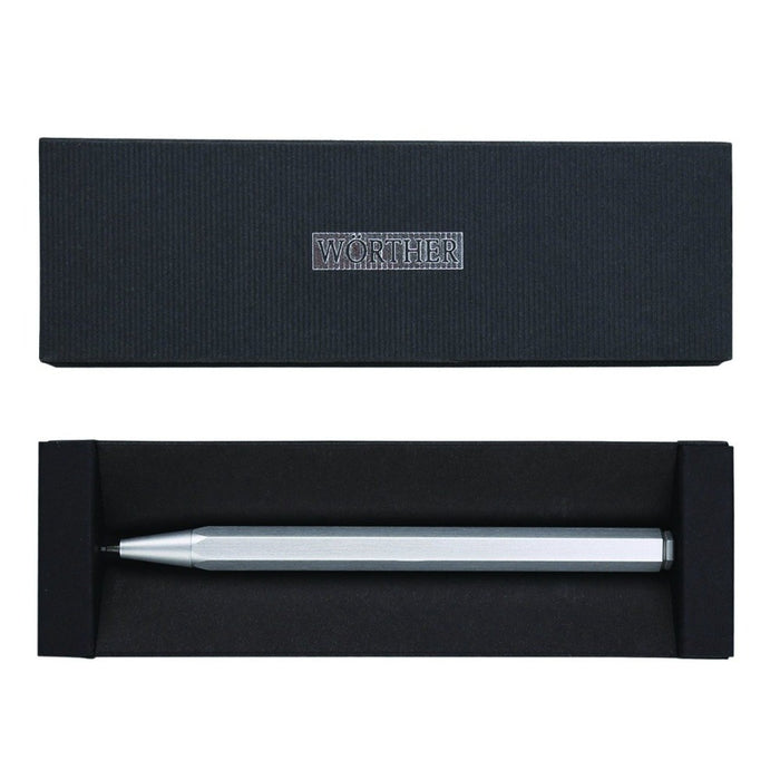 The 1.18 mm HB-lead is not too thin and not too thick. It's ideal for fine writing and drawing. Timeless design in an ergonomic hexagonal shape makes sure that this mechanical pencil lies very well in the hand. Made of natural and black anodized aluminium.